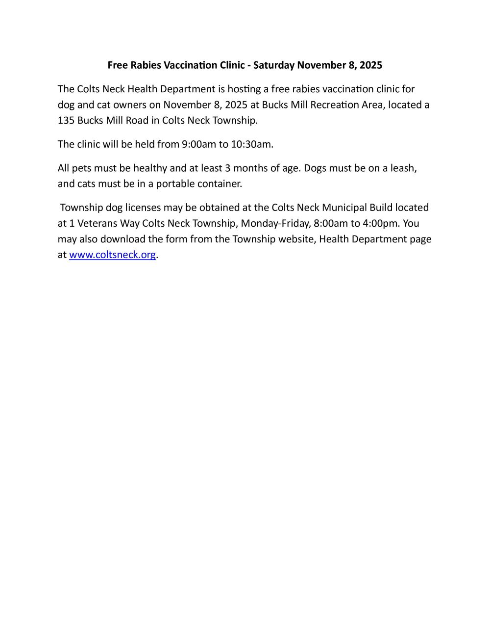 Posted on October 8, 2025 by Trina Lindsey Free Rabies Vaccination Clinic, Saturday, November 8, 2025